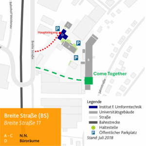 Anfahrt zum Lehrstuhl für Umformtechnik (Breite Straße 11, 57076 Siegen)
